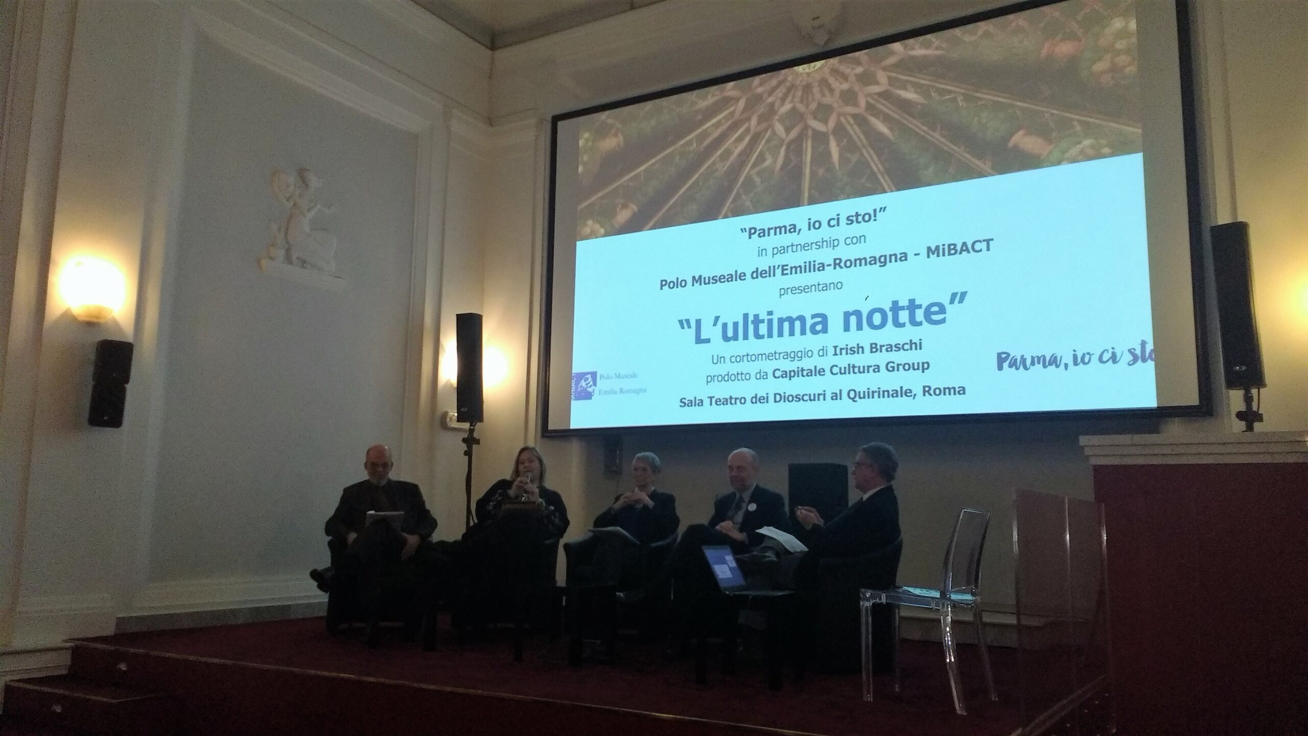“The Last Night”, the short film written and directed by Irish Braschi and set in the Chamber of Saint Paul in Parma, has been presented in Rome, today, Thursday 16 November, at the Dioscuri Theatre at the Quirinale, managed by Istituto Luce-Cinecittà. The project is supported and promoted by the Association “Parma, io ci sto!”, born from a group of entrepreneurs aiming to relaunch the city and was developed in collaboration with the Polo Museale dell’Emilia Romagna and the Soprintendenza Archeology Fine Arts and Landscape of Parma and Piacenza. It proposes itself as an innovative example of public-private partnership in favour of the enhancement of one of the greatest masterpieces of the Italian Renaissance. Produced by Capital Culture Group, the short film is set in the room frescoed by Correggio between 1518 and 1519 and is interpreted by two emerging figures of Italian cinema and television, Massimiliano Davoli and Cristiana Vaccaro, in the garments of the artist and the client, respectively, the Abbess Giovanna from Piacenza.